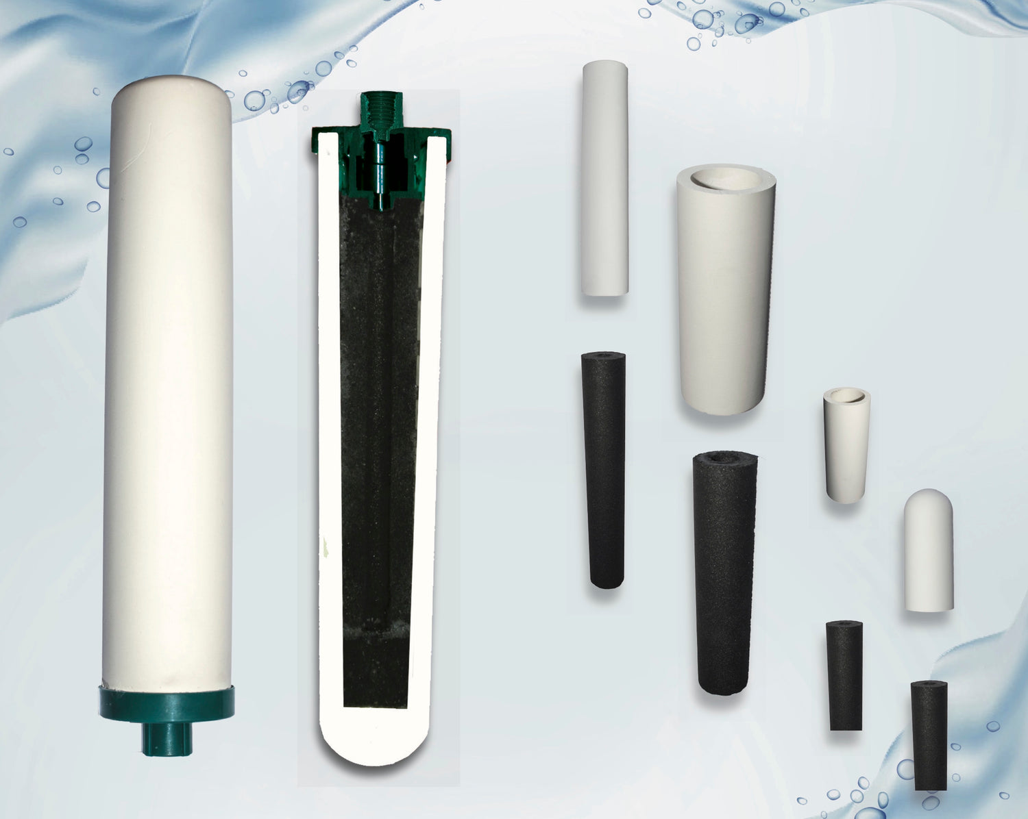 Der Keramikfilter bildet mit seiner Mikrofiltration das Herzstück des Wasserfilters. Die kleinste Porengrösse ist 0,1 Mikrometer und die größte 0,5 Mikrometer. Alle Filterstärken entfernen wirksam Bakterien, Giardia, Zysten, Schwermetalle und Viren aus dem Trinkwasser. Für den Körper wichtige Mineralien und Salze verbleiben im Trinkwasser, da sie dank ihrer extremen Kleinheit (Mineralien sind Ionen) den Filter passieren können.